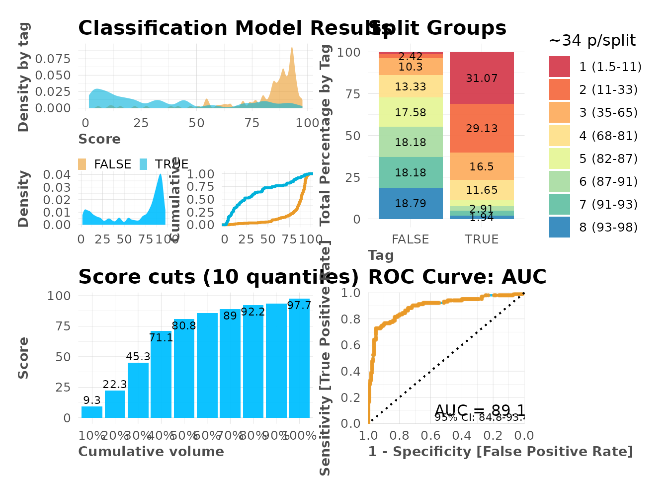 model_metrics().Results: Returns a list with inputs, leaderboard, best model, metrics, and plots. Export with